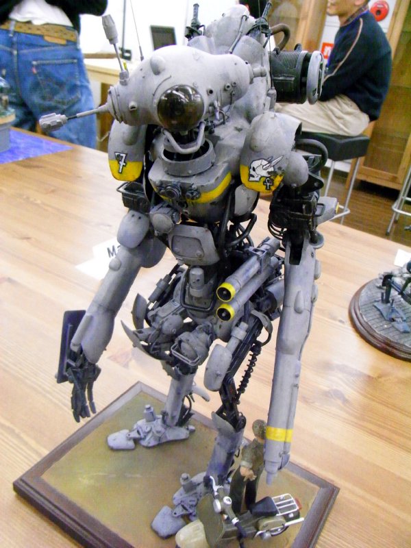 PR 先日、大阪のボークスで行われた大ルナダイバー展の方に行ってきました。 会場には既に数多くのルナダイバーが。 ルナダイバー以外にもスネークアイ大行進の作品やfgにアップされていた作品など 多くの方の作品を生で見れて大変良い刺激を頂きました。 これだけの数の丁寧に塗装されたルナダイバーが一箇所に集まる事なんて 後にも先にもこの時くらいだったのではないのでしょうか。 それぞれ違ったアプローチの塗装をしていて見ていて飽きません。 いくつか。 えび反りさんのルナダイバー 塗りが凄い好みです。 パネルラインを引き立たせた塗装もさることながら 機体に書かれた漢字、落ち着いた配色がたまらないです。 カレ太郎さんのルナダイバー コクピット部の作りこみと パイロットから漂う無重力感が凄い。 ルナダイバー以外の作品も。 ケタギーノさんのユーミールも展示されていました。 巨人です。圧巻。 これぞミキシングという作品。 モチベーション上がりまくりです。 一応自分も以前製作したミキシングルナダイバーを持っていきました。 なんでミキシングなんだよ! おぃ!テメェまだルナダイバー買ってないのに参加したのかよ! と石投げられそうですが、反論の余地はありません。 全身でその石を受け止めます。アヘアヘ。 ルナダイバーで、以前から考えているやりたいネタが一つあるので、 今後製作すると思います。 たぶん。 普通に塗装してミキシングの物と並べるのが夢だったのに 気づいたら捻じ曲がってました。 最近はフルスクラッチのクリーチャーっぽいものを作っています。 まだまだ他にもやりたいネタのストックが大量にあるので パパっと完成させて次の作品にいきたいところですが 暫くはこれにかかりっきりになりそうです。 新しい事をする時は流石に今までのようにはいかないですね。 この次にもあれやこれや、まだまだやりたい事、作りたいものだらけです。 ネタには事欠かないのは嬉しいのですが 頭の中で構想練ってる内に熱が冷めちゃって 結局製作断念するというパターンが一番残念なので 自分が作りたいという気持ちがあるうちに手を動かしたいですねー。 あと最近twitterが大変楽しいです。 101スネークアイ大行進に向けて作っていたものがようやく完成しました。 本日大阪城ホールで開催されていたJMC作品展に行ってきました。 やはり生で見る質の高い作品というのはたまらないものがあります。 今度発売されるルナダイバーと一緒に横山宏先生が製作されたものも展示されていました。 以前ミキシングで製作したルナダイバーは モデリングブック等の写真を見ながら製作したわけですが こうして立体物を生で見て、初めて「あーここはこうなってたのかー」と気づかされる部分も。 実は先生の作品を生で見るのは今回が初めて。 生です。生。テンション上昇。 力強い筆のタッチが印象的でした。勉強になります。 そのまま会場内で開催されていたジャンク市でパーツやデカールを購入。 JMCではこういうこともやられてるんですね。 来場するまで知らなかったもので一心不乱にランナーを漁りながら再びテンションは上昇。 その後アナハイムカフェで行われたマシーネンOFF会にも参加してきました。 こちらでもハイクオリティな作品のオンパレード。 色々な方ともお話が出来て大変楽しい一時となりました。 とにかく皆さん筆塗りが巧い。 今回のOFF会へ以前製作したルナダイバーも持って行きました。 前日に全体をリペイント。 実は焦って塗装をしたがために 表面が乾く前に重ね塗り ↓ 下の塗料が溶けて暗色の下地まで剥がれる ↓ 濃度濃い目の塗料でリタッチ ↓ 表面がガタガタ ↓ ヤケクソになる となってしまい最終的には前方部分の塗装を一度紙ヤスリで全部剥がして再び塗装。 最後までちゃんと間に合うのかヒヤヒヤしながら作業していました。 最終的にはなんとか落ち着いてくれたので一安心。 仕上げに油彩を表面に刷り込み。 やっぱり焦って塗装するのは良くないですね。落ち着きます。 以前hdkzさんにルナダイバーを見ていただいた折に 「視線が止まるよう何かワンポイントほしいね」との意見を頂き 自分でも何かしら横山宏先生の作例のようなポイントとなるデカールが欲しいなぁ と思っていたので 帰宅後JMCの会場で販売されていたデカールを貼ってみました。 一度一区切り付けた作品に再び手を加えるというのも面白いですね。 手を動かしながら 「あぁそういえばこんなこと考えながら製作してたなぁ」 と思い出したり。 年末のスネークアイコンペへのモチベーションがかなり上昇した一日となりました。 ようやく完成しました。 色々難産でした。 今回はコピックを使用せずに油彩で汚してみました。 ソロモンGEOの予定だったのですが製作している内にいつの間にか紅蜘蛛の要素も。 武器の方はツヴァイらしく近接特化で巨大な斧。 当初はそのまんま大剣を持たそうと思ったのですが やっぱりそれでは面白くないだろ